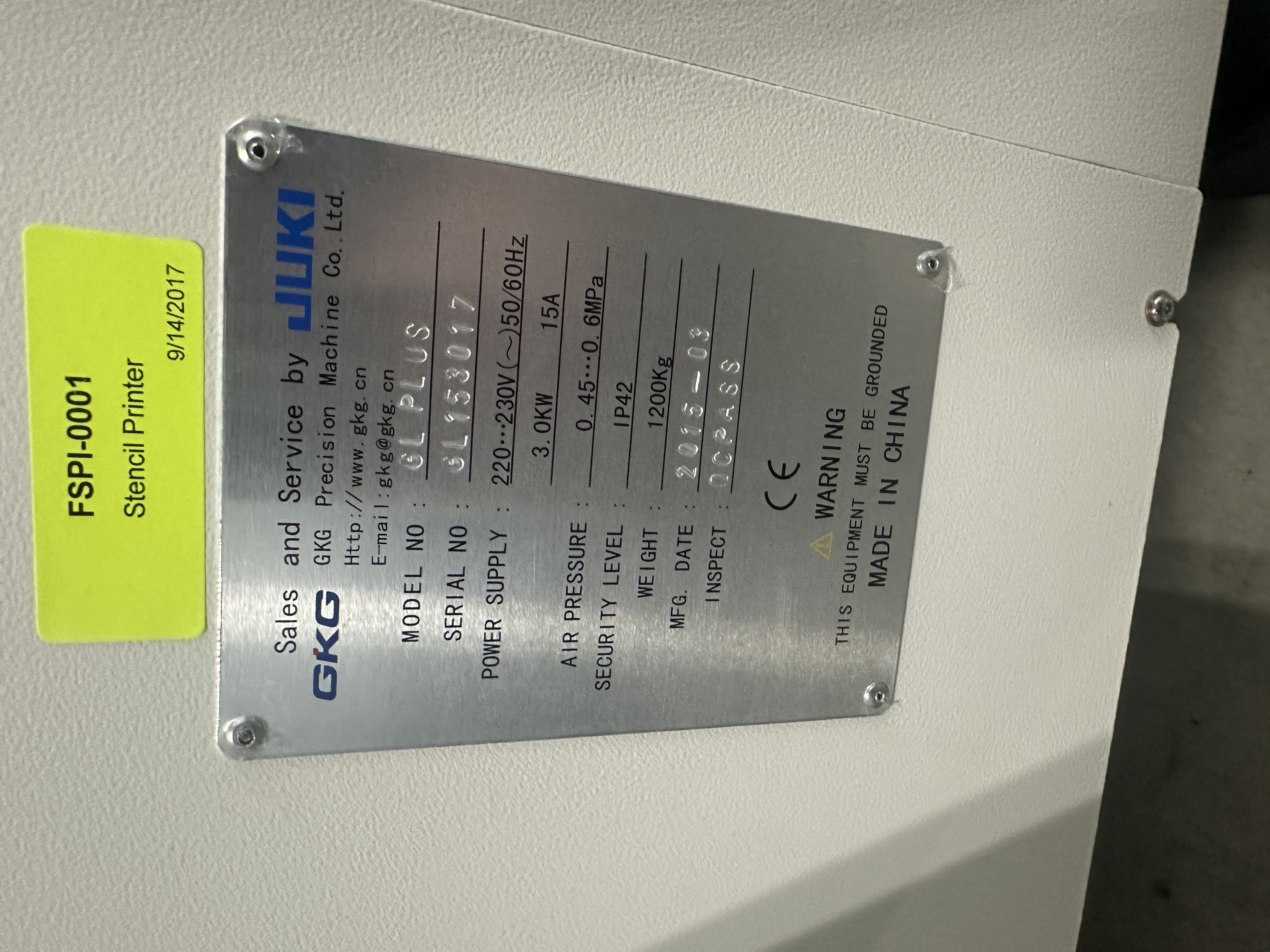 Juki GKG GL Plus Screen Printer